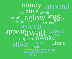 Any vowel can make the Schwa sound: zebra, open, pencil, lemon, and butter. But let’s give a little extra attention to the letter A, which can make the Schwa sound at the beginning (aware) and end (ninja) of some words. Play an online word search game with words where the letter a makes the Schwa sound at the beginning.