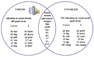 A set of resources for with handouts and worksheets for voiced and unvoiced consonants is available at the Super Tutor Tools store at Teachers Pay Teachers.